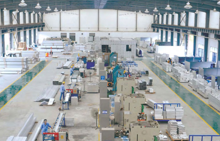 - The company is also well equipped with lines for aluminium doors, windows and curtain wall causing annual capacity as 500 thousand square meters of curtain wall, 600 thousand square meters of doors and windows, 120 thousand square meters of aluminium wood composite windows, 400 thousand square meters of unit curtain wall and 200 thousand square meters of aluminum formwork.